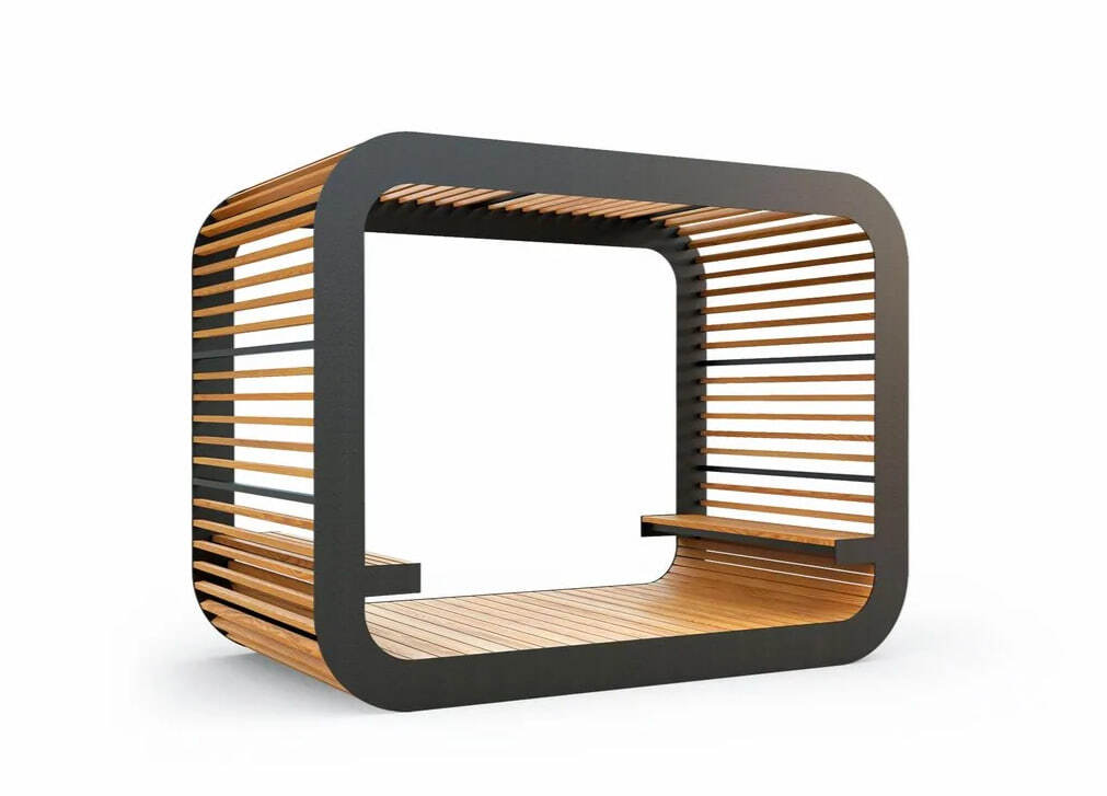 Описание: Современный дизайн, сочетание дерева и металла в беседке «Реакт» создают настроение в садово-парковых пространствах, в которых будет приятно провести время. Варианты цвета: Палитра RAL, Сроки изготовления: от 21 дня